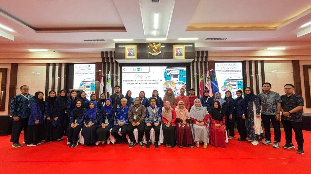 Politeknik Kesehatan Kementerian Kesehatan Gorontalo melaksanakan kunjungan studi tiru ke Poltekkes Kemenkes Banten selama dua hari, pada 23–24 Desember 2025. Kegiatan ini bertujuan untuk melihat secara langsung dan mempelajari praktik baik (best practice) dalam pengelolaan Unit Pengembangan Kompetensi (UPK) SDM Kesehatan Banten serta pengembangan Unit Bisnis Poltekkes Kemenkes Banten.