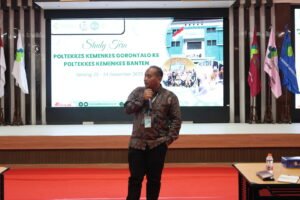 Politeknik Kesehatan Kementerian Kesehatan Gorontalo melaksanakan kunjungan studi tiru ke Poltekkes Kemenkes Banten selama dua hari, pada 23–24 Desember 2025. Kegiatan ini bertujuan untuk melihat secara langsung dan mempelajari praktik baik (best practice) dalam pengelolaan Unit Pengembangan Kompetensi (UPK) SDM Kesehatan Banten serta pengembangan Unit Bisnis Poltekkes Kemenkes Banten.